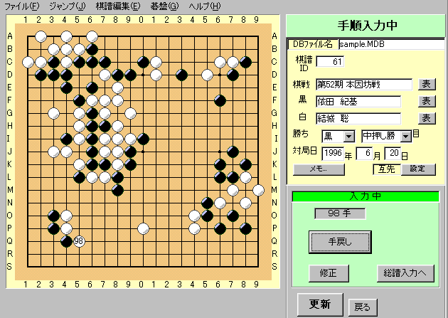 ◆棋戦名、棋士名など対局メモもマスターファイルから簡単に入力できます。