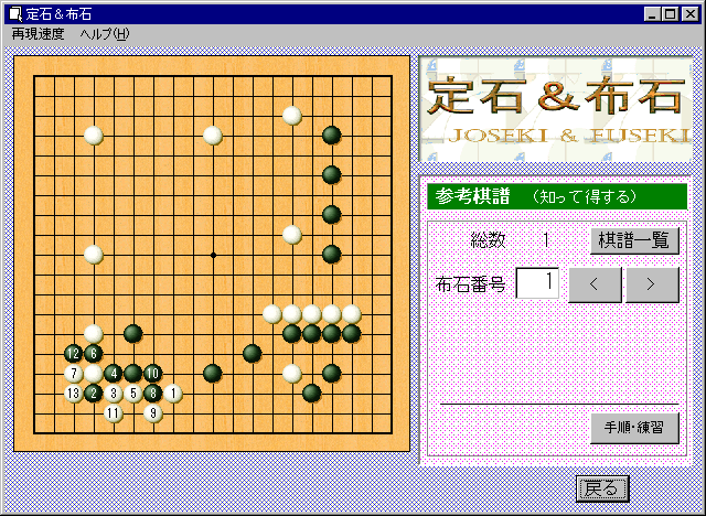 検索した定石の手順を見ることができ、検索された定石を練習することができます