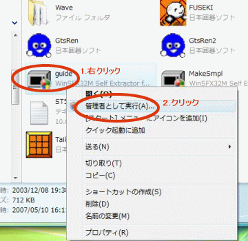 - 「guide (.Exe)」ファイルを右クリックし、ポップアップメニューの