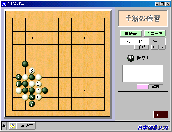 1.解答を探し、碁盤上をクリックします