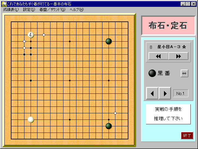 ◆13パターン約90例の基本の布石を指定してスタートできます。